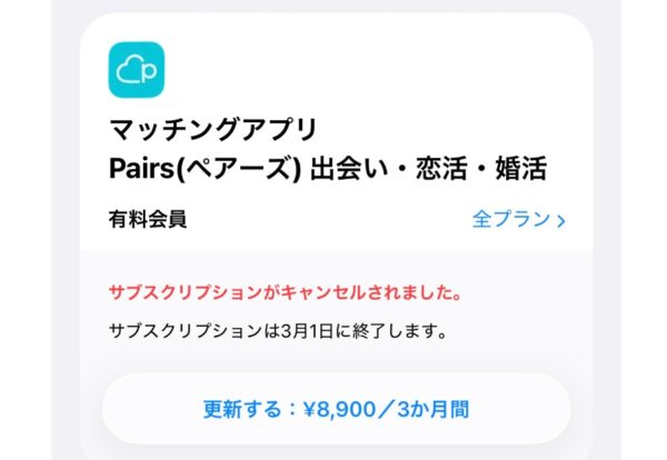 マッチングアプリ「ペアーズ」で有料会員のときに彼女・彼氏ができて即時退会したいという場合には、かなり手続きがわかりづらいです。