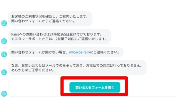 問い合わせフォームを開くをクリック。