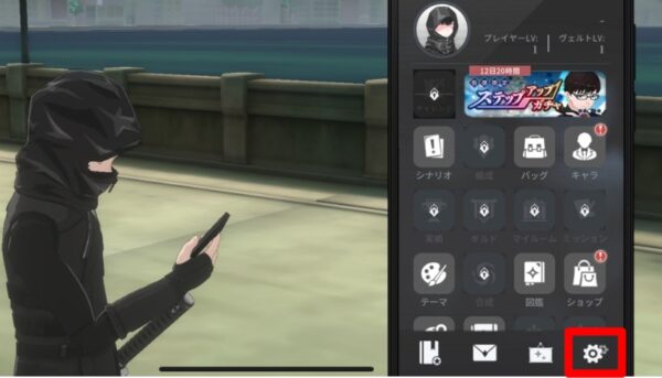 - チュートリアル終了後にプレイ画面右上のスマートフォンアイコン