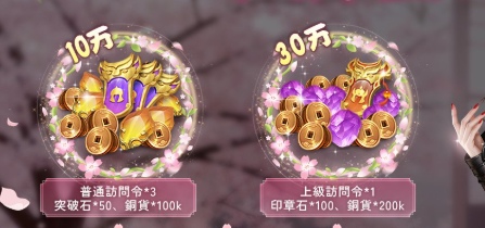 また、50万人の予約特典は現在誰でももらえるようになっており、望月千代女が配布されます。その他、印章石が一般的に言うガチャ石のことでしょう。その他にも銅貨や突破石なども。