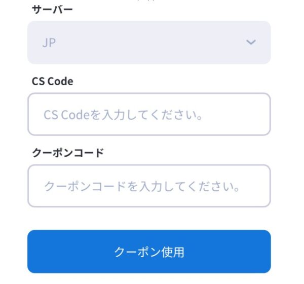 | クーポン交換所へ | クーポン交換所にアクセスしたら、CSコードとクーポンコードを入力して、クーポンを使用。