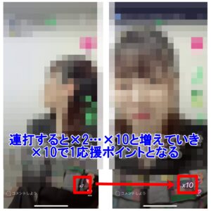 | 応援ポイント | 配信中に視聴者からハートやギフトが送られた数によって増えるポイント。 |