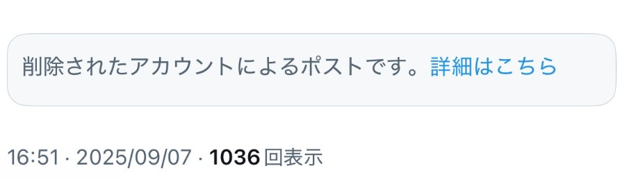 具体的には上のような感じに「削除されたアカウントによるポストです」と表示されており、具体的に中身を見ることができません。起こり得る状況としては、とあるアカウントAが引用リプをしており、その引用された元の投稿が消されたのではなく、アカウント自体が削除された場合です。